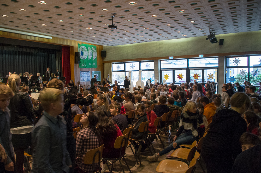 Zum zweiten Male hat uns das fantastische Göttinger Symphonie-Orchester besucht. In zwei Durchgängen konnten unsere Schülerinnen und Schüler „Märsche aus aller Welt“ in der Aula anhören. Von kulturellen Meisterwerken wie Händels „Einzug der Königin von Saba“ hin über ausgefallenes wie der typischen Zirkusmusik wurde uns viel imposante Musik geboten.